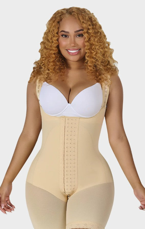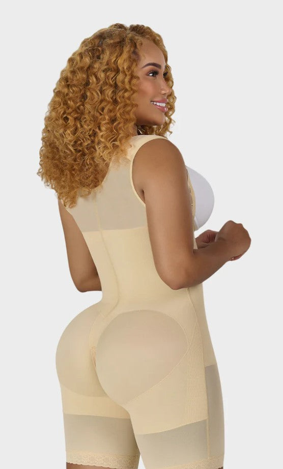 Nuestra faja reloj de arena Ref. F00489, es una prenda media pierna de alta compresión, con 4 niveles de ganchos.